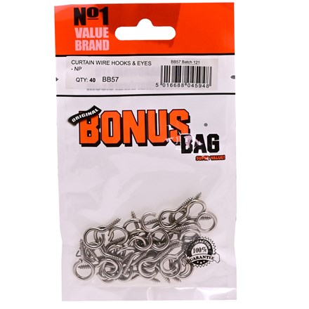 VALUE BRAND – CURTAIN WIRE HOOKS AND EYES – 40PACK